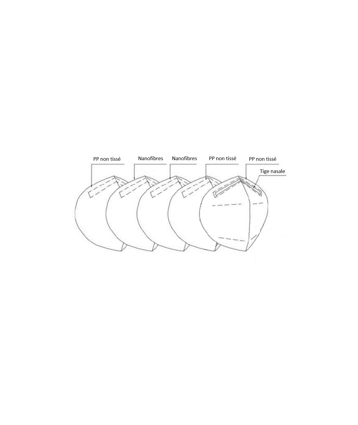 Filtre 5 épaisseurs, norme FFP2 (norme EN 149:2001 + A1:2009 FFP2 NR), filtration 94% des particules jusqu?à 0,4 micron. Frais de livraison offert sur ce produit.